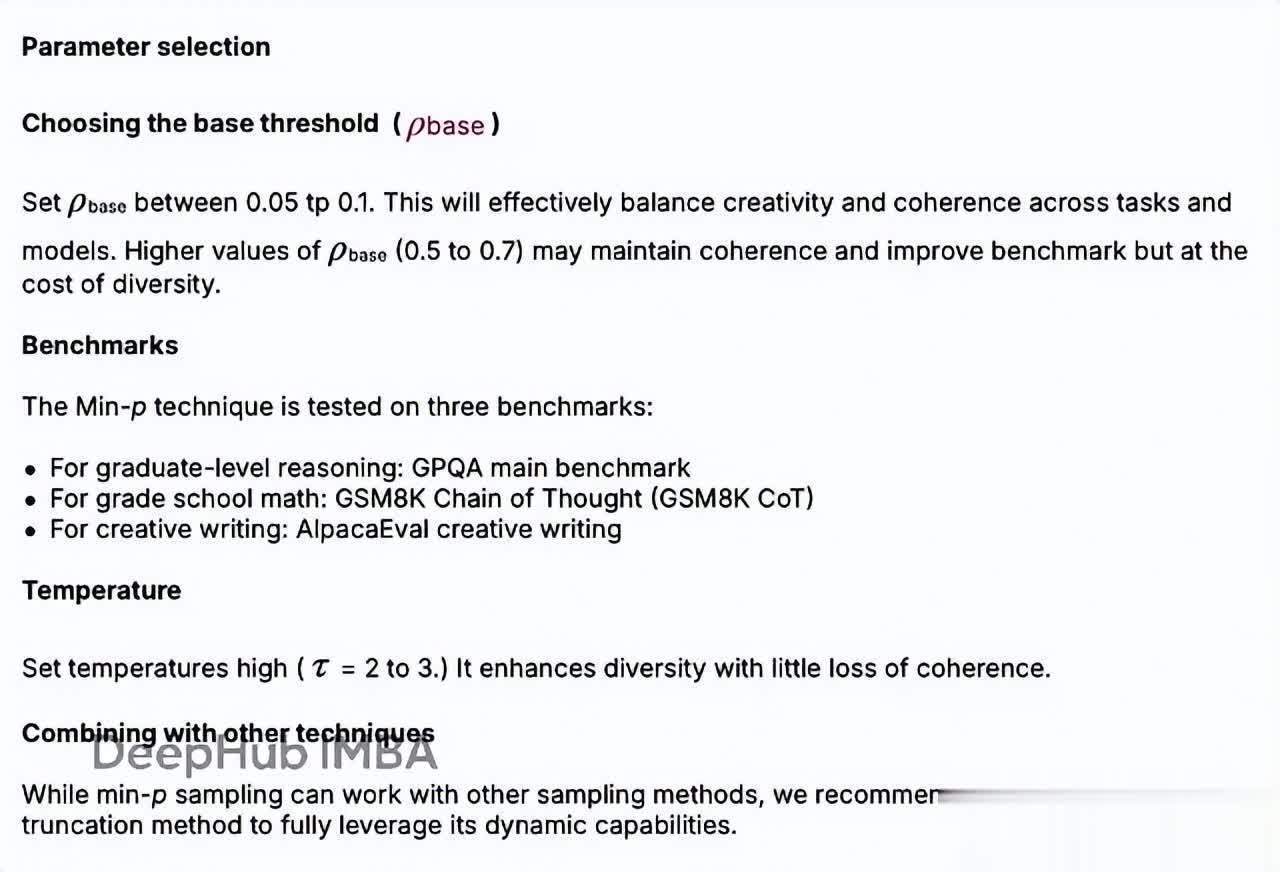 解决了长期困扰的"多样性-质量"权衡问题,min-p 算是生成式语言建模的一个进步。对既要高质量又要多样性的文本生成应用来说,这很有价值。