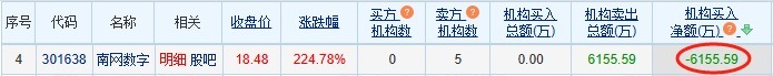 龙虎榜数据显示,卖出南网数字金额最大的前五名中,全部为机构专用席位。经统计,机构席位今日卖出南网数字净额为6155.59万元。